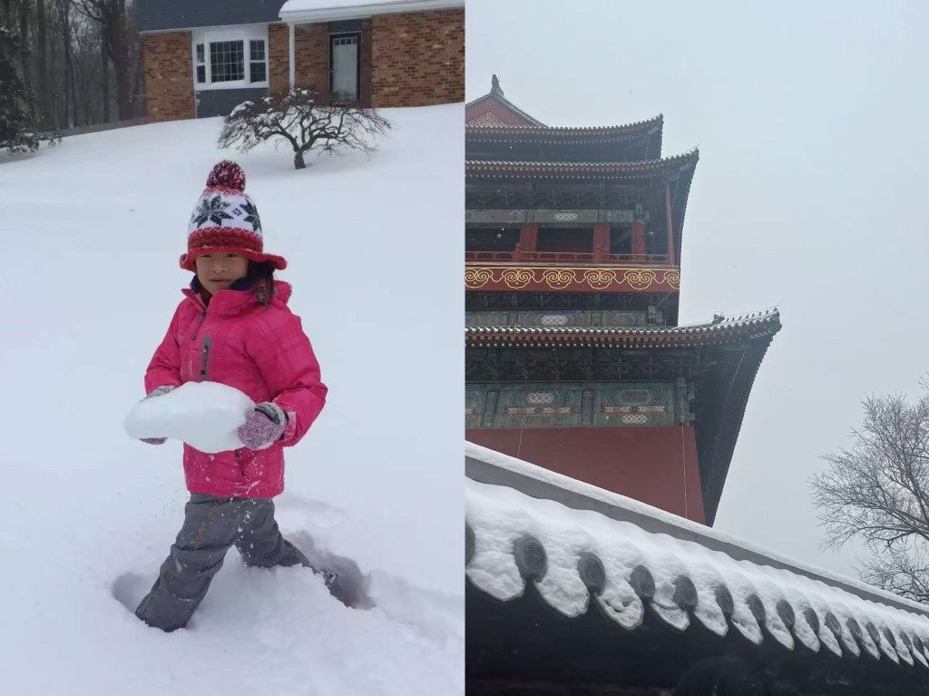 Even though I am born in Beijing, I went to kindergarten and elementary school in Hockessin, Delaware. My childhood was a lot of moving back and forth between the places. If you want to come to Beijing one day, hit me up! I know the best restaurants and bars that would give you the best experience in the best city that fuses modernity while preserving history. Since I’m missing snow in NC alot, here’s a kid picture of me in a Delaware blizzard& a snowy Beijing landmark, the drum tower: