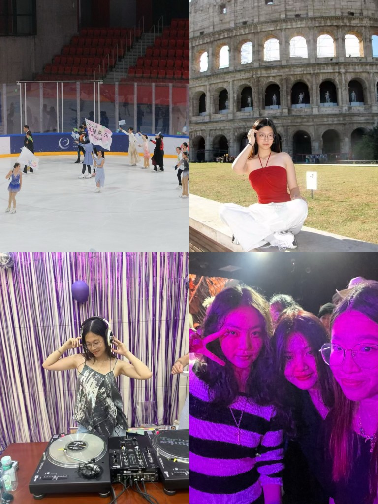 At UNC, I am a chemistry major on the pre-pharm track. Besides scientific research, I love skating, music (collecting vinyl and going to shows!), travelling, and hanging out with friends. At UNC, I am in the WXYC radio station& actively engaged in research! Here are pictures of me in the figure skating charity show I directed, travelling to Rome this summer, DJing at high school graduation, and with my awesome friends at, according to the New York Magazine, the “purest, most rock-and-roll place in Beijing”, School!