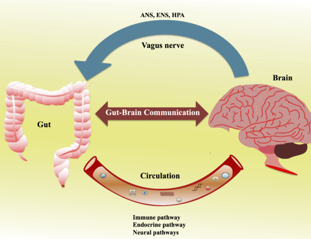 The gut-brain axis, quite literally, is made of the brain and the gut. They are like friends texting 24/7, as smooth as a two way highway that links your thoughts in your head with your friend’s, except that in your body it links your brain and gut. The friends get messages through phone wires, and in our body the massive phone line called the Vagus nerve, alongside chemical messengers like serotonin, that actually helps control your mood (your friend’s messages impacts your mood). Living inside your digestive system are microbes, like a huge extensive friend group that help digest your food and send reports to your brain. This is why eating a bunch of junk food can make you feel grumpy and tired (your friend is spamming you with useless memes and you’re bored). Essentially, your head and your stomach are a best friend team: when one is happy, the other usually feels great too.