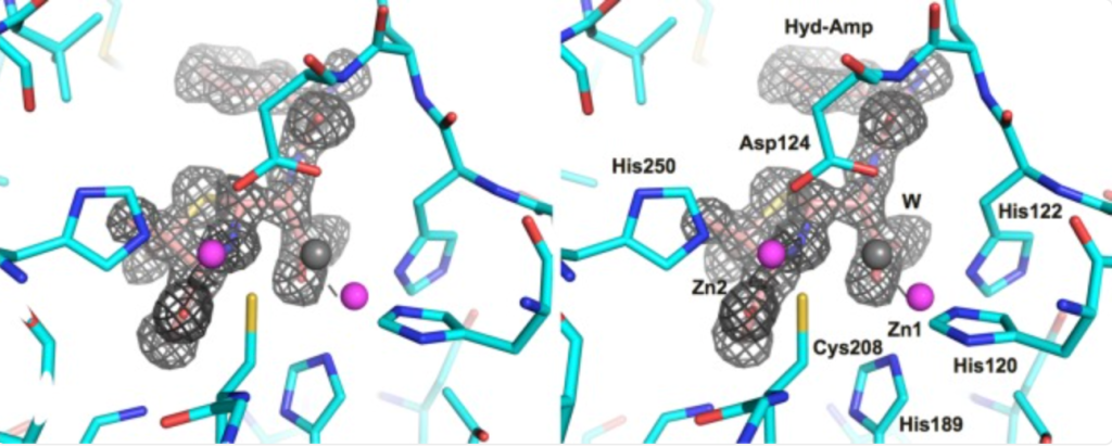 NDM-1 in complex with hydrolyzed ampicillin. Image credit Kim et al.